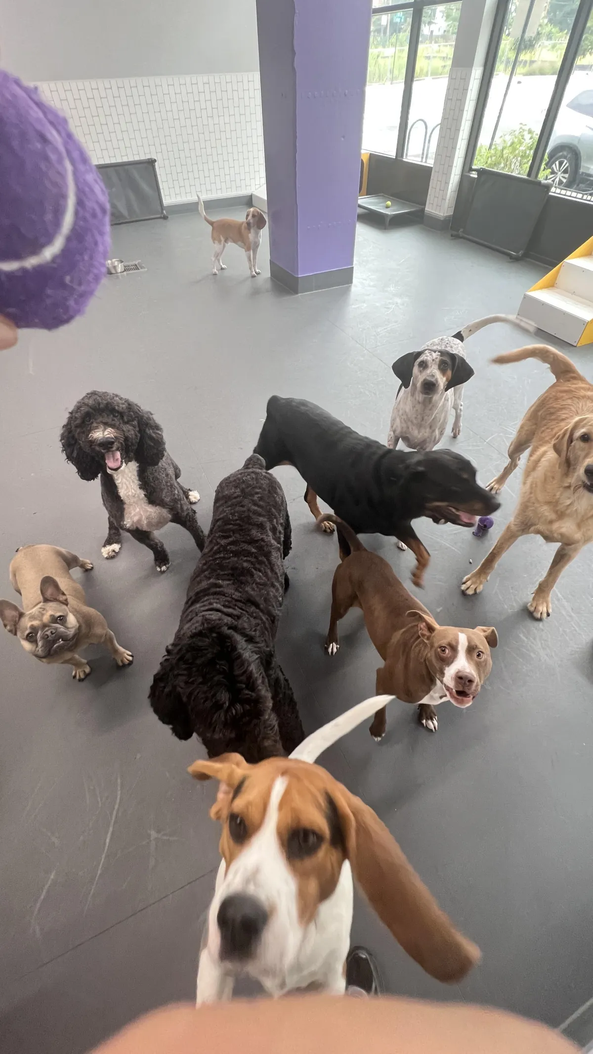 Overnight guests enjoy private suites with comfy KurandaⓇ beds and are monitored with in-crate cameras, sensors, and frequent staff check-ins. During the day, dogs join supervised playgroups, so they’re entertained and well cared for around the clock.